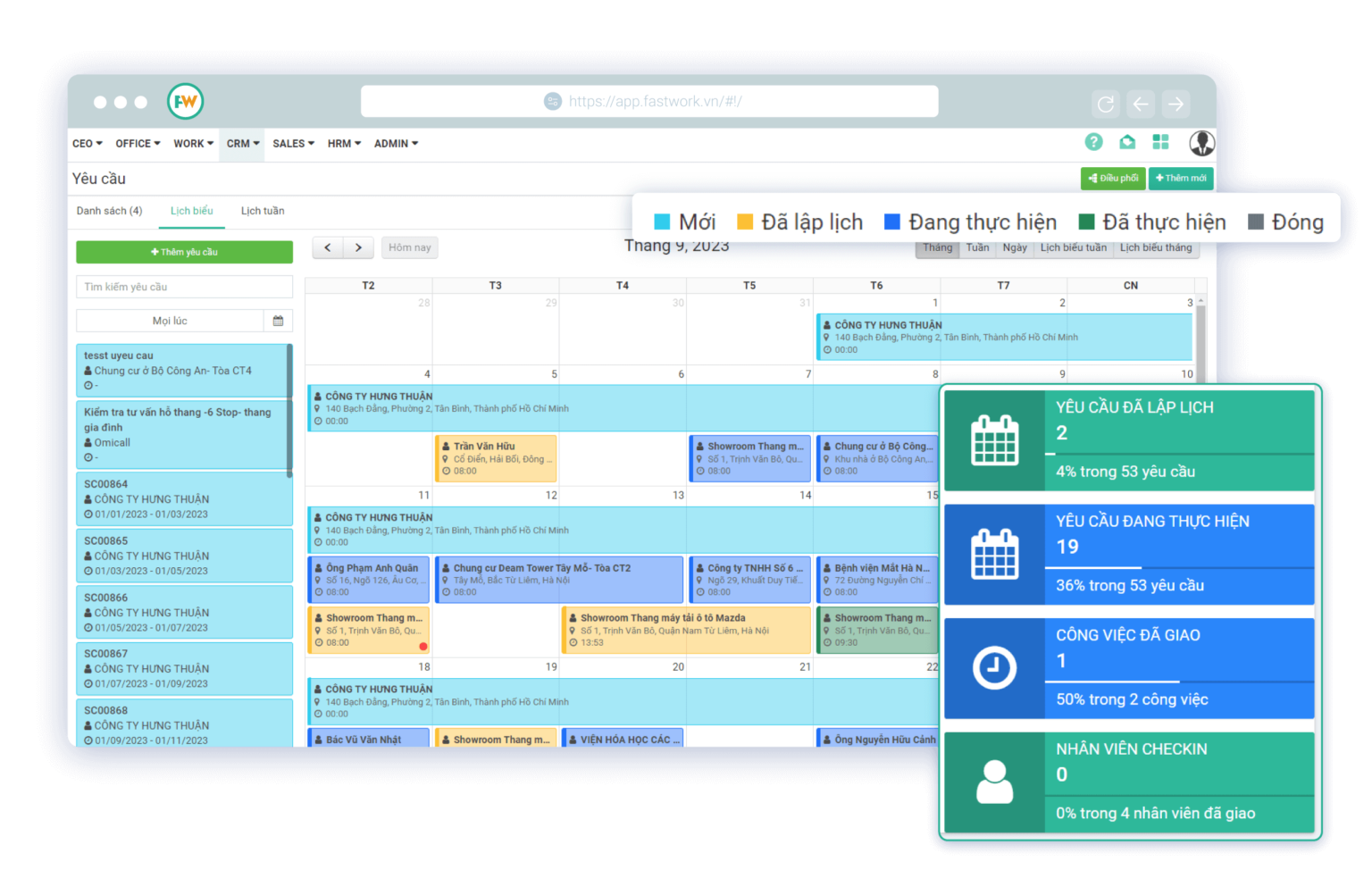 Xem nhanh lịch công việc lắp đặt, bảo trì, viếng thăm khách hàng,… theo ngày/ tuần/ tháng
