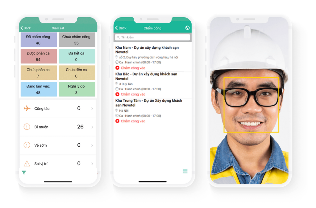 Nhân viên dễ dàng chấm công tại văn phòng, tại khách hàng bằng cách selfie khuôn mặt để nhận diện FaceID trên app di động.