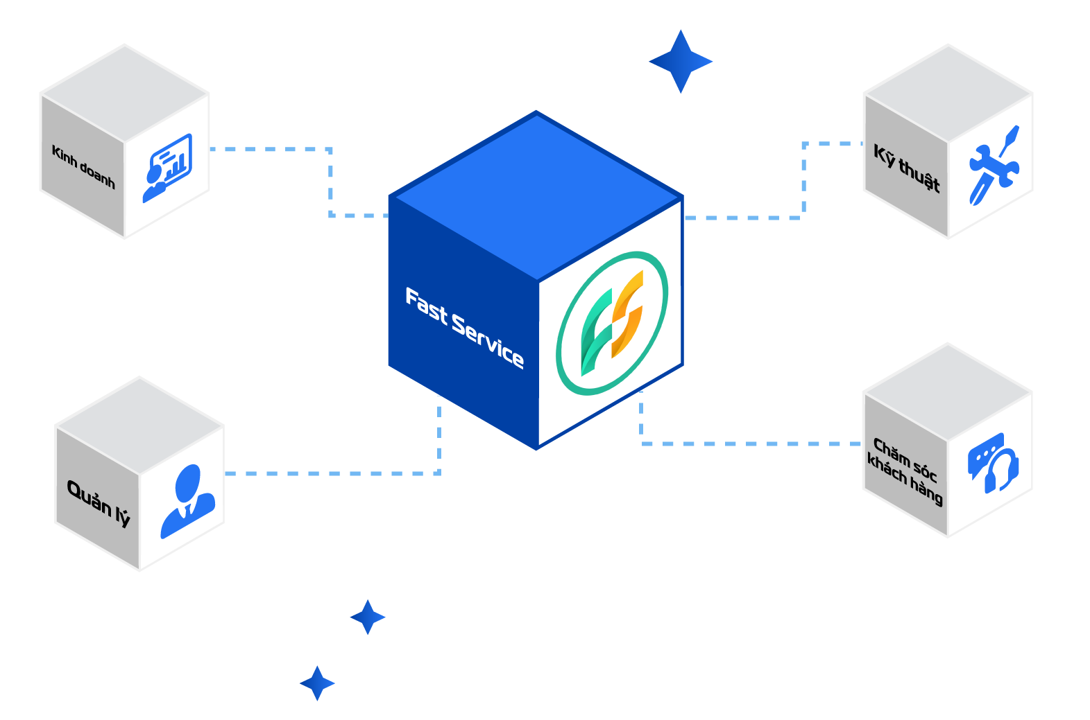 Phần mềm Fast Service là công cụ hỗ trợ quản lý và thực thi công việc cho bộ phận Chăm sóc khách hàng tại các Doanh nghiệp Thương mại - Dịch vụ.