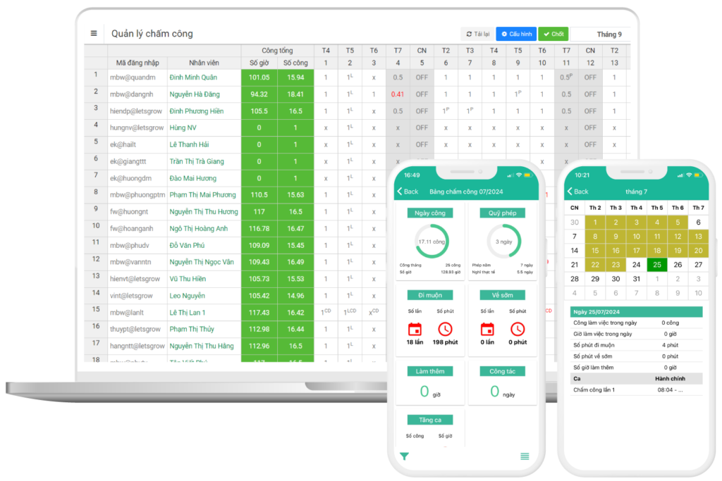 Giao diện quản lý chấm công & tính lương trên phần mềm FastWork